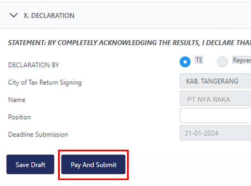 Karena Pajak Keluaran lebih besar dibanding Pajak Masukan, maka muncul PPN Kurang Bayar. Oleh karena itu, saat pelunasan pembayaran PPN Kurang Bayar, pencatatan dapat dilakukan sebagai berikut :